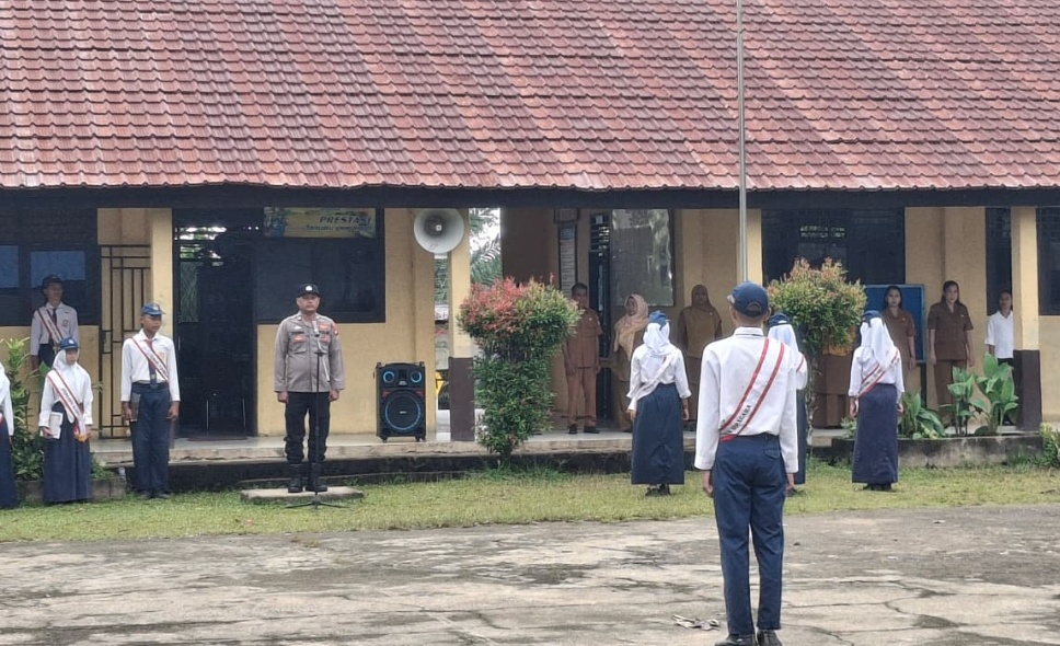 FaktualUpdate.com | MELAWI – Dalam rangka membangun kedekatan dengan kalangan pelajar sekaligus memberikan edukasi positif, PS. Kasium Polsek Nanga Pinoh, Aiptu Syamsul, bertindak sebagai pembina upacara di SMPN 06 Nanga Pinoh, yang berlokasi di halaman sekolah Desa Tanjung Sari, Kecamatan Nanga Pinoh, Kabupaten Melawi, pada Senin (20/4/2026) pagi.