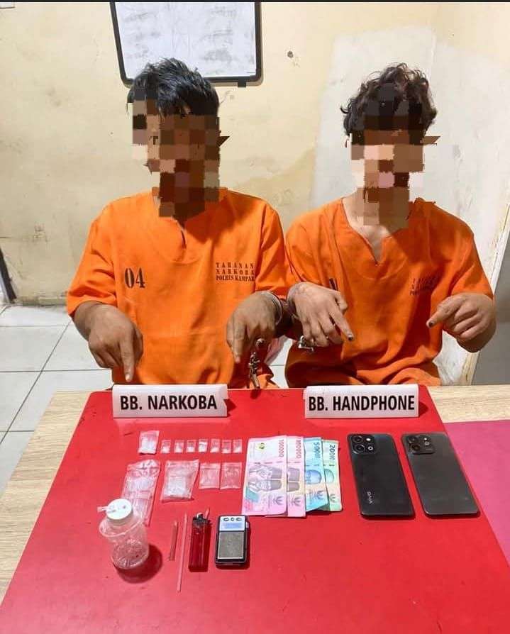 Kedua pelaku yang diamankan adalah AP (32), warga setempat, dan LU (22), warga Desa Lubuk Siam, Kecamatan Siak Hulu. Dari tangan keduanya, polisi menyita 8 paket sabu dengan total berat 3,48 gram.