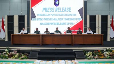 Kodam XII/Tanjungpura melaksanakan Press Release Penggagalan Penyelundupan Narkotika di Perbatasan Republik Indonesia – Malaysia.